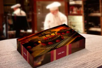 This high-resolution bakery box mockup is available in layered PSD format. Download the mockup for free.