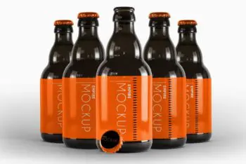 This beer bottle mockup displays a pack of five beer bottles. Download this mockup for free and easily customize to get your desired presentation.