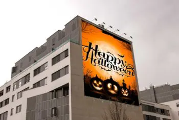 Showcase your party advertising design on a billboard using this Halloween party billboard PSD mockup. Download it for free!