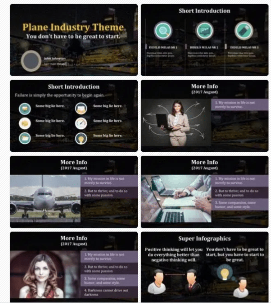 Are you looking for a flexible template that you can easily edit? We bring to you Airline Industry Keynote template for presentations on aircraft and its components. This Keynote theme comes with the modern sophisticated design, which can help you explain the technical specifications as well as innovations in recent times.