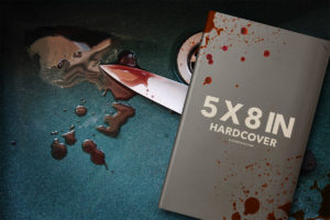 It is a 5 x 8 inches sized hardcover book mockup covered with blood for horror and murder designing effect. Also, it offers high quality & well-organized layers. You can easily customize the design using the smart objects of the mockup template.