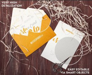 This invitation card mockup comes with a useful envelope design template. Both you can use to create a presentation of your own card designing ideas. If you are using it for a corporate purpose, then you can easily put your logo and other business information on the card. If it is for personal purpose, then also you can add elements to the mockup and customize the way you like. the two mockup templates give a photorealistic view of your artwork. They are of high resolution and excellent quality. Thanks to its smart layer option, the whole customization process becomes very easy. Moreover, the item is print ready. So, you can understand how easy to use this mockup is.