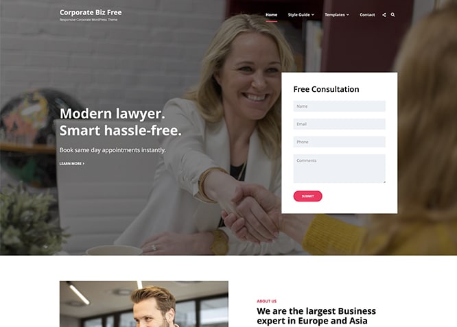 Corporate Biz – A Free Corporate Website WordPress Theme