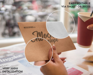 This mockup shows an elegant look of the envelope. This comes in a print-ready format along with very high detalization. It also features fully editable layered files. You can find the smart objects on the well-organized layers. If you don’t like the existing look, you can easily change the entire design. You can also add custom designs and make presentation extraordinary.