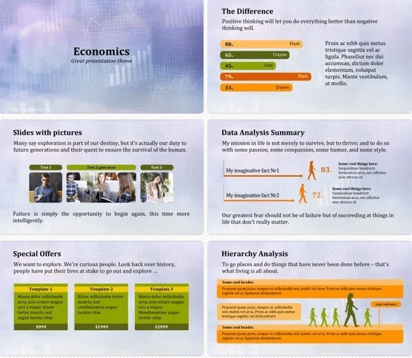 Moreover, it will be easy for you to make a meaningful connection with your audience. This template would help you build engaging presentations on various subjects. For example, some of the subjects are production, distribution of goods and services, economic growth, economic issues, etc. In other words, this theme can help you create a flawless presentation on your favorite topic right away. Therefore, you should get this theme right now.