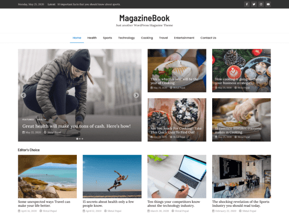 Are you looking for a resourceful WordPress theme for news and magazine-styled websites? If yes, here is a spectacular web design theme for you. MagazineBook provides you an ideal platform for creating an online magazine for health, fitness, recipes, technology, sports, culture, and other niches. It also offers plenty of customization options that will help you build a polished magazine in just a few minutes.