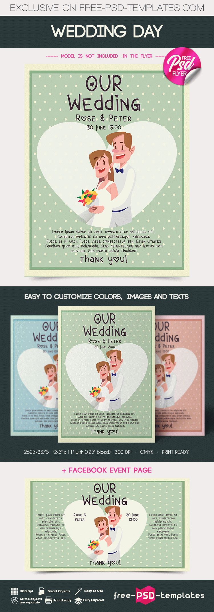 The best part about using this PSD mockup is that it is absolutely free to download. Furthermore, it will cost you nothing even if you use it multiple times. The mockup looks very realistic and is made of high quality, having 300 dpi resolution. Customize this wedding party flyer the way you wish using Adobe Photoshop. All the objects in the mockup are separate and it comes with all the necessary layers for you to create the perfect flyer for your wedding event. It features very high detailing and is ready to print as soon as you finalize the design you want to create.