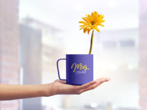 Mug on Female Hand PSD Mockup to Design Beautiful Presentations