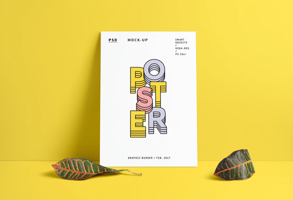 This mockup features a white poster set in the yellow background. The poster in the mockup contains text that can be easily replaced using smart objects. If you have any specific designs in mind, then you can customize the design of the mockup along with the color. If you are designing this poster for a client then you can include this mockup in your presentation to give your client an actual idea of how the poster would look on print.