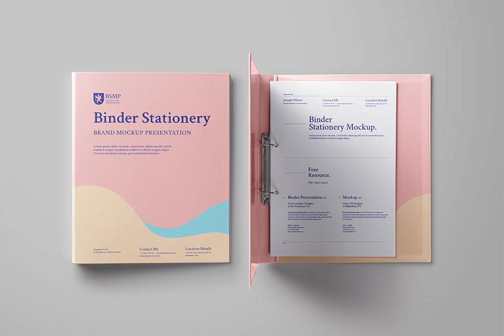 To make the most of this freebie, download the file and integrate your designs into the scene via smart object layer. Specifically, this mockup allows you to add your designs in a close and open ring binder and on the A4 paper inside the ring binder. Furthermore, you may also change the background color or use the smart object to add your own background design.