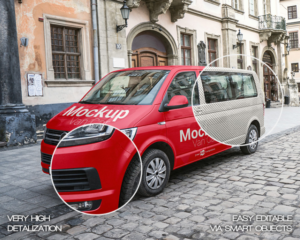 This van car mockup displays a superb looking red colored van design. It is photorealistic and easy to edit. It has high detalization and resolution to make your presentation just flawless. Its smart objects help you customize the entire thing as per your need and preference easily.