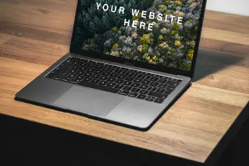 This is a realistic MacBook on Table Mockup, available in PSD format. You can use this mockup to showcase your next website project. Free download option is available.