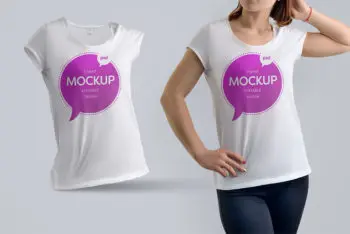 This t-shirt mockup is specially designed for women. It is free to download and easy to edit. The color, design, text, and graphics – everything in this mockup can be customized in Adobe Photoshop hassle-freely.
